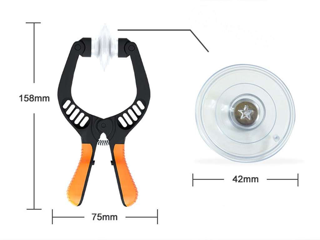 Инструмент для вскрытия телефонов iphone, samsung galaxy, motorola, sony, htc, meizu и д.р. Устройство предназначено для снятия сенсорных дисплеев, тачскринов за счет своих присосок. Отлично подойдет для смартфонов с диагональю дисплея до 5 дюймов. Инструмент выполнен из высококачественной пластмассы с прорезиненными ручками, присоски съемные, при износе можно заменить.