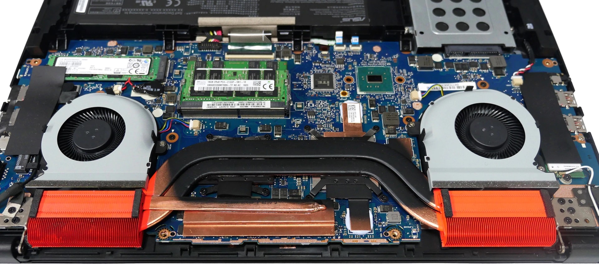 После того, как вы снимите крышку, вы увидите систему охлаждения Hyper Cool Duo-Copper для независимого охлаждения процессора и графического процессора.