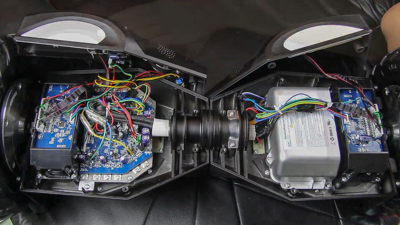 Разобрав гироборд swagtron t6, первым что бросается в глаза это блок с батареей.