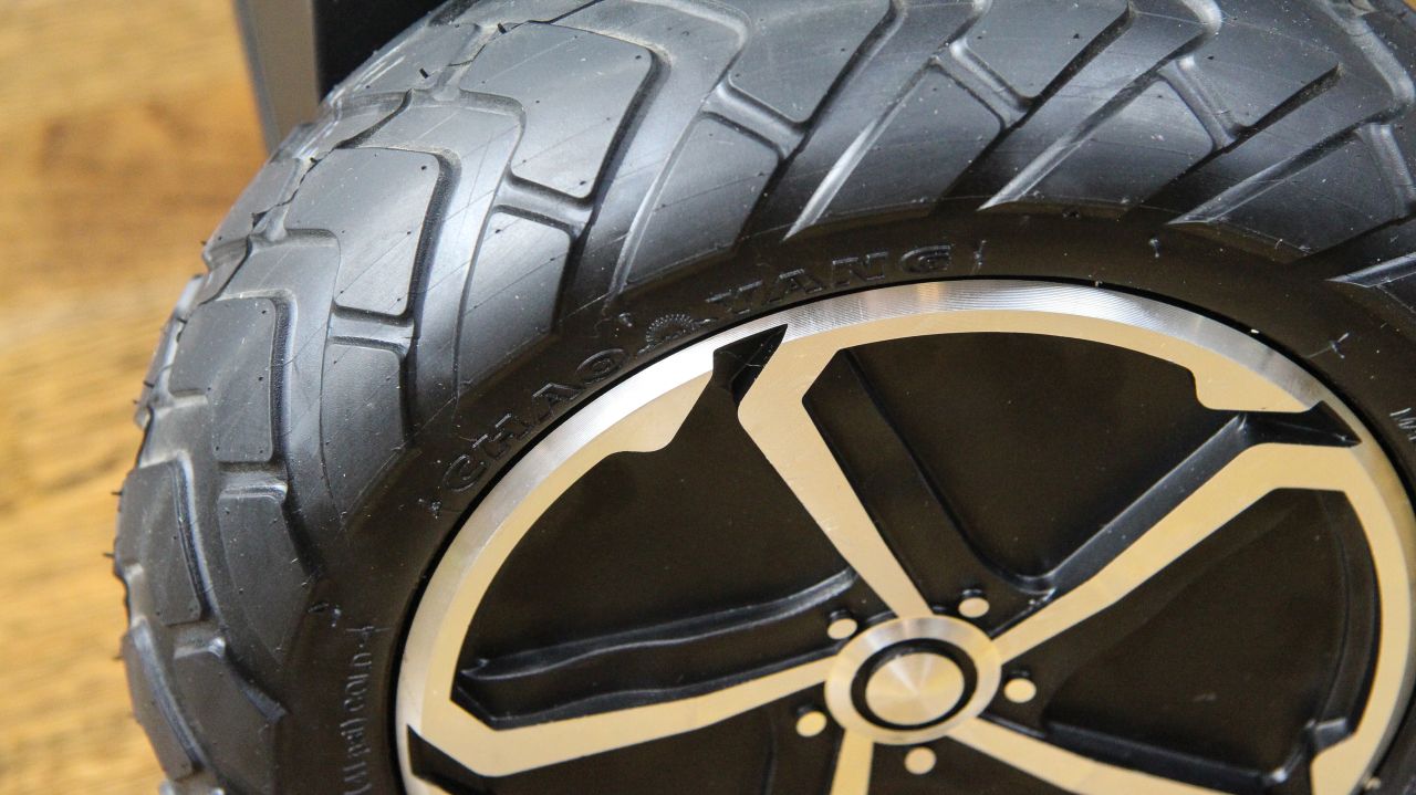 Гироборд оснащен десятидюймовыми бескамерными резиновыми шинами с достаточно высоким протектором специально разработанными для повышенной проходимости. Колёса выполнены из сплава алюминия, при этом устойчивы к царапинам. В случае необходимости есть возможность подкачать колёса или наоборот понизить давление.