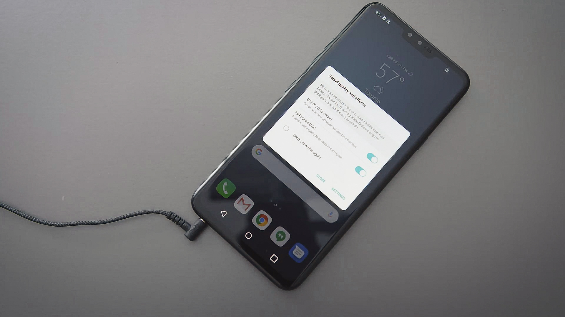 В этом году LG опять представили хорошую аудио систему, как и следовало ожидать. Есть 32-х битный Hi-Fi Quad DAC и стандартный 3.5 mini-jack разъем для наушников.