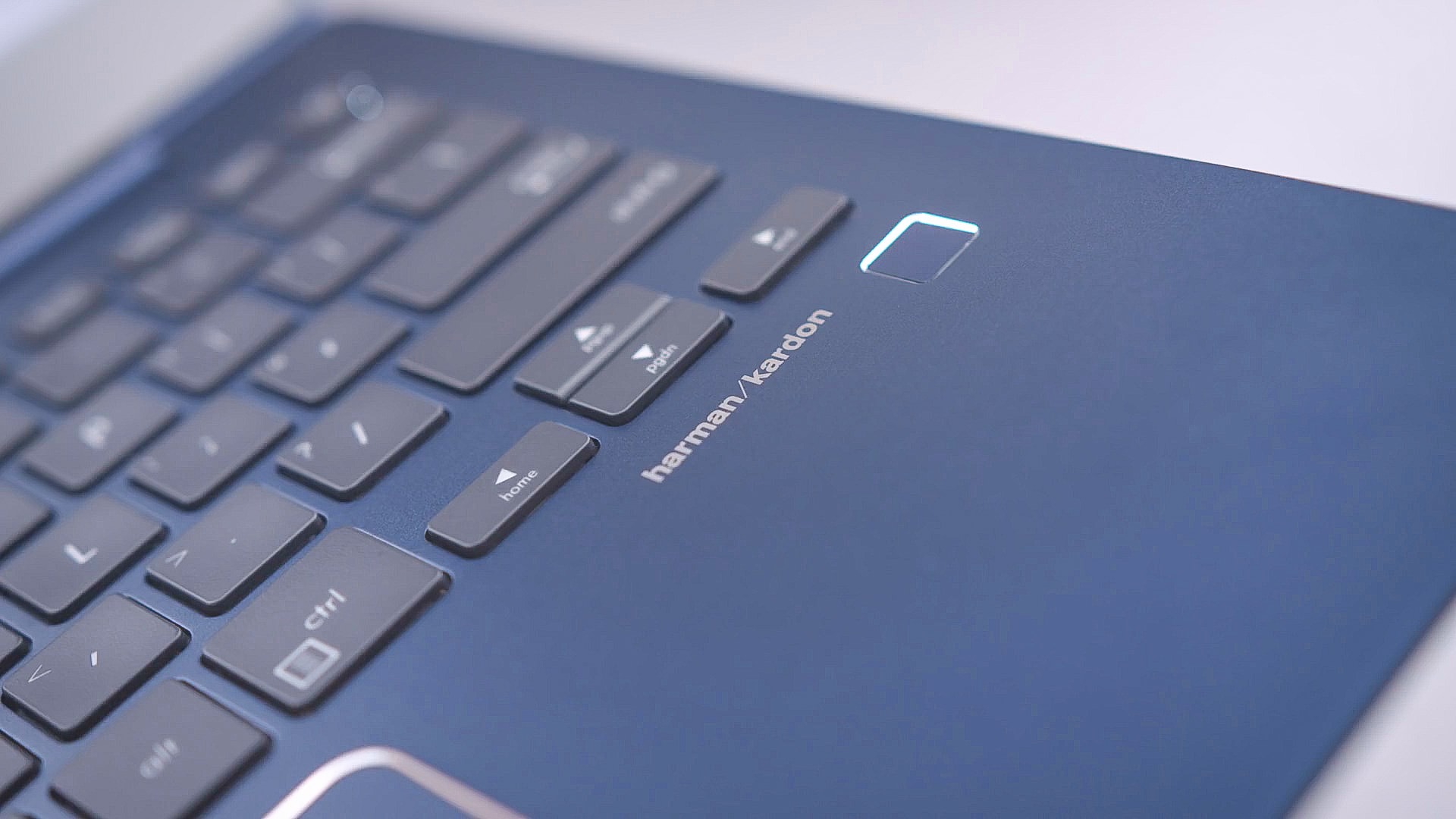 Так же присутствует сенсор для отпечатка пальца с правой стороны ноутбука сразу под клавишами со стрелочками и так же достаточно гармонично его вписали в общий дизайн устройства.