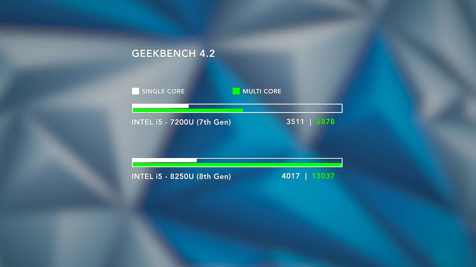 Установлен процессор восьмого поколения intel Core i5 Kaby Lake-R, как вы можете заметить по тестам на графике ниже, производительность в многоядерном режиме по сравнению с предыдущим седьмым поколением достаточно большая, фактически в два раза!