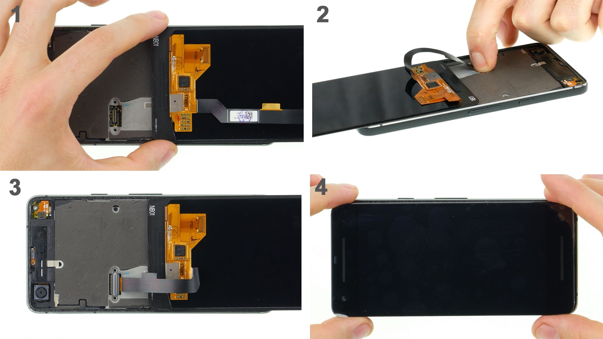Дисплей Pixel 2 относительно легко заменить, потому что вы можете снять дисплей напрямую и не нужно разбирать все устройство.