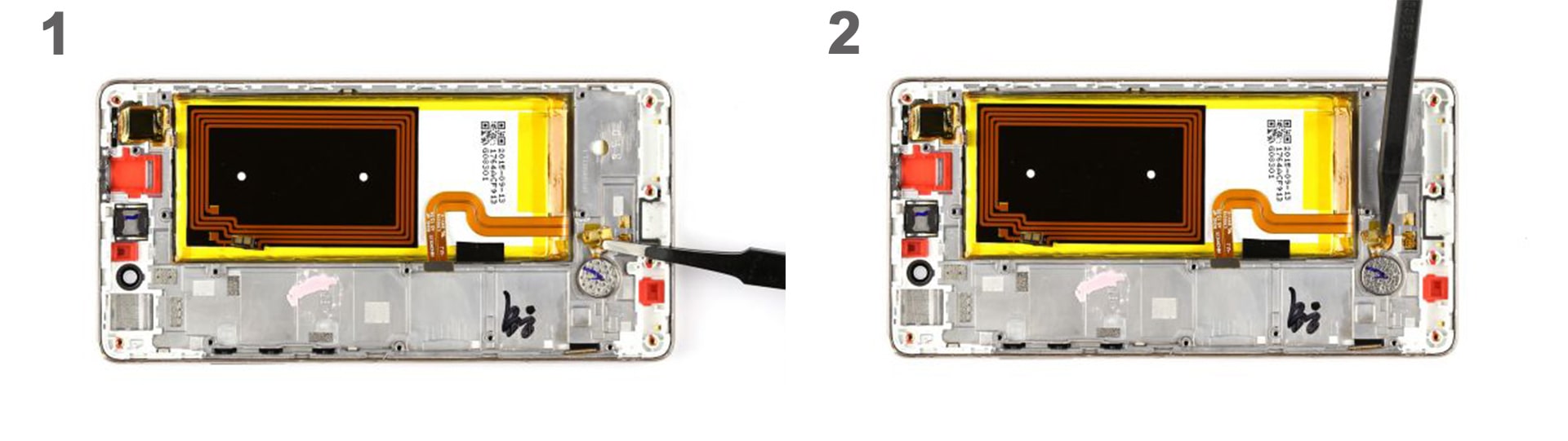 Вибро мотор приклеен к корпусу. Используя металическую лопатку, аккуратно отсоедините вибро мото. Снимите мотор с вашего устройства.