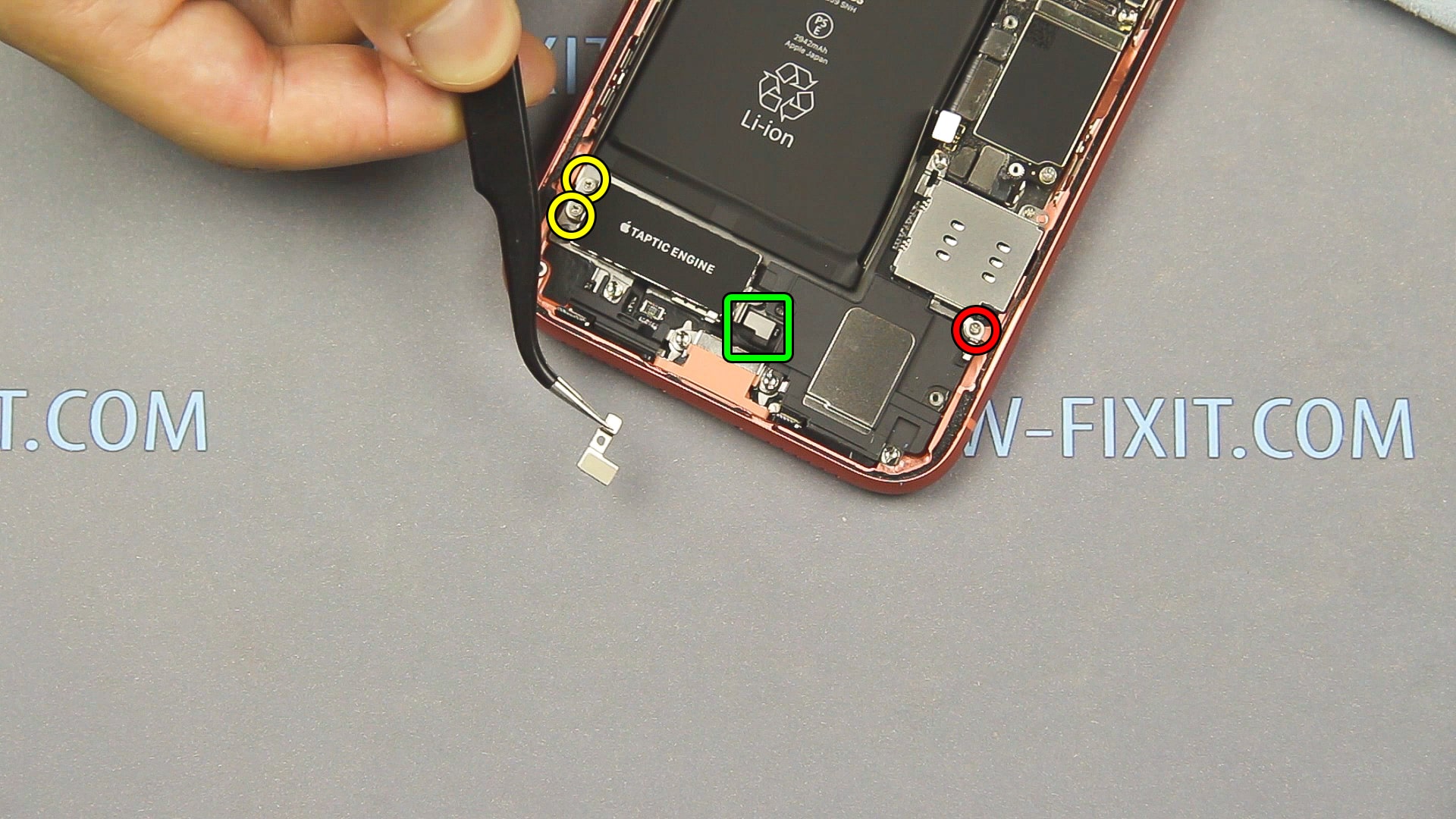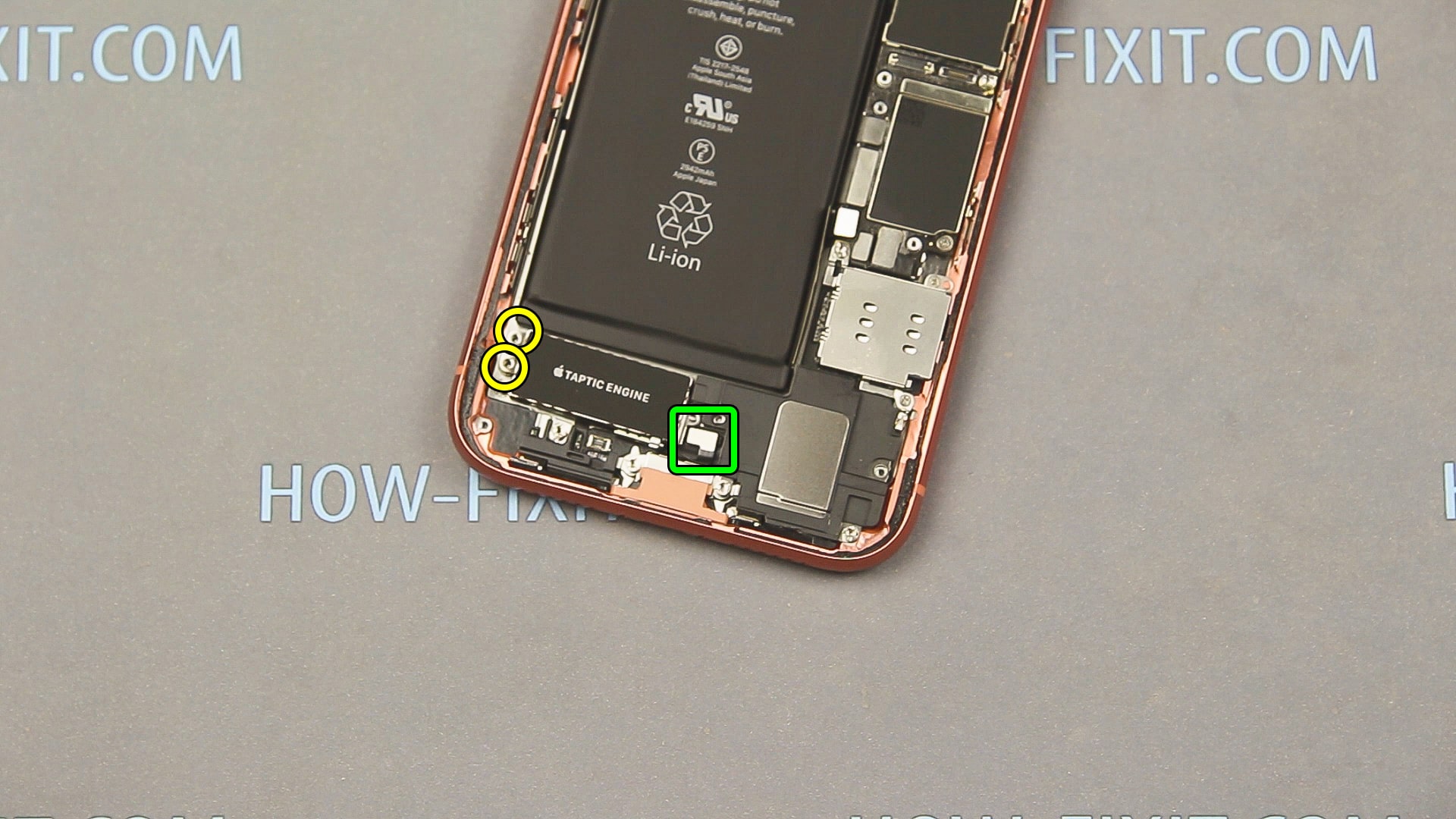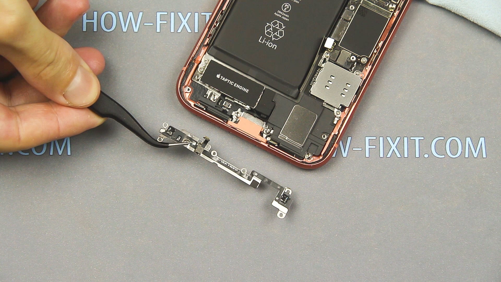 Для замены аккумулятора на iphone xr рекомендуется снять вибромотор (taptic engine) и динамик, чтобы легче было удалить силиконовую ленту из-под батареи.