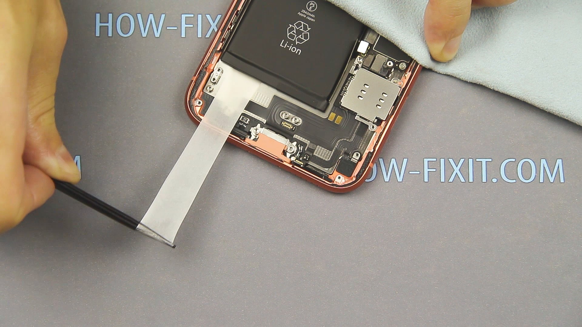 В iphone xr практически ничего не мешает для успешного удаления клейкой ленты из-под батареи, поэтому вероятность надрыва ленты не велика, но это не означает что нужно резко тянуть за нее.