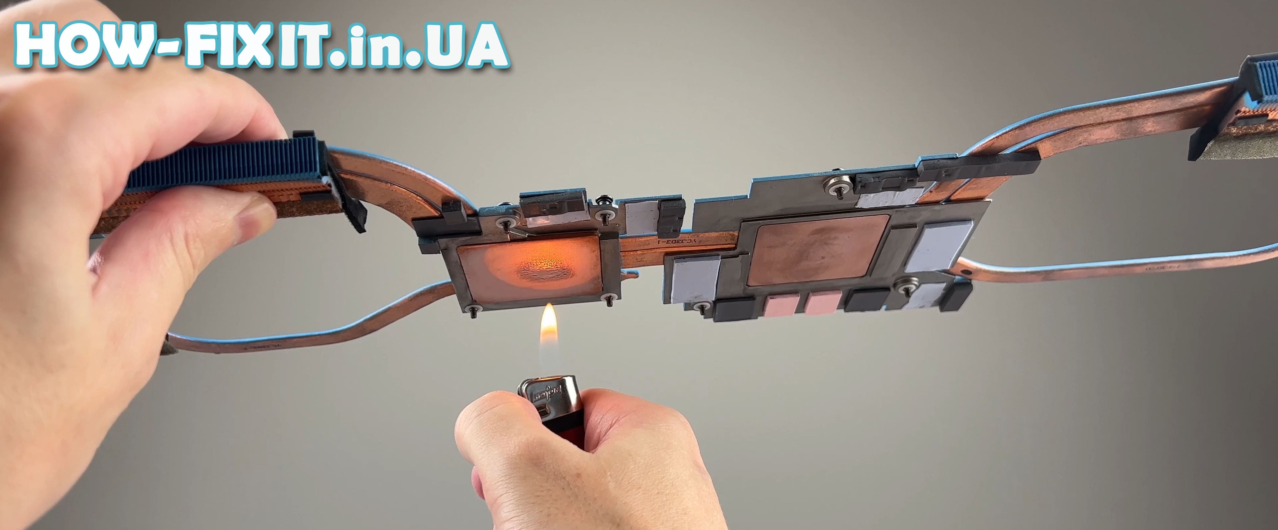 Вы можете самостоятельно проверить термотрубку, для этого вам придется разобрать ноутбук и снять систему охлаждения. Также вам понадобится любая зажигалка.