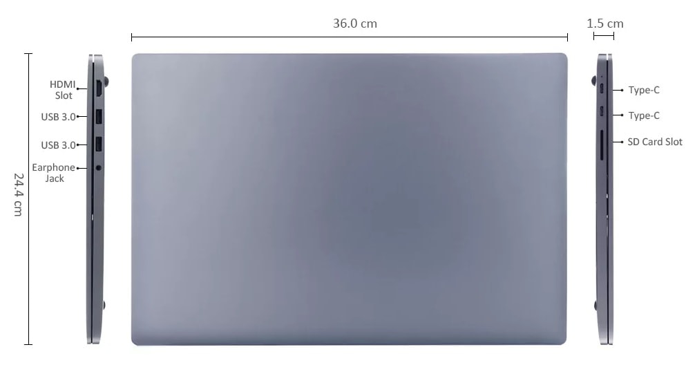 Розташування портів в ноутбуці Xiaomi Mi Notebook Pro