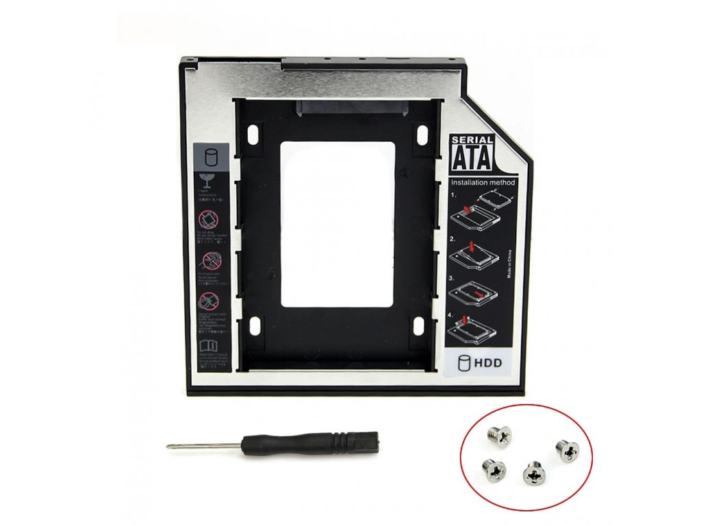 Перехідник dvd optibay caddy для установки другого жорсткого диска або ssd накопичувача замість dvd приводу в ноутбук. В даний optibay адаптер можна встановити жорсткий диск або ssd накопичувач будь-якого обсягу і швидкості читання, єдина умова це тип підключення - SATA інтерфейс, а також товщина корпусу 12.7мм. У всіх сучасних ноутбуках використовується SATA інтерфейс підключення оптичних приводів, в старіших ноутбуках (приблизно до 2009 року випуску) використовувався інтерфейс підключення IDE. Адаптер працює без будь-яких додаткових установок драйверів і під усіма операційними системами windows, linux, mcos.