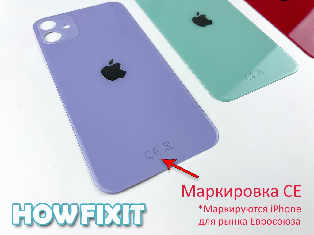 На стекле присутствует маркировка CE (Европейская Сертификация). Данная маркировка применяется на европейских версиях iPhone 11, для рынка США смартфоны продаются без символов сертификата на задней панели.