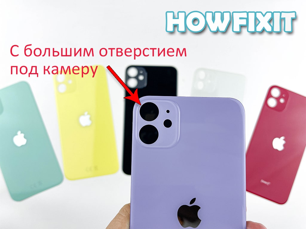 Это стекло применяется для замены разбитого стекла корпуса на новое. Благодаря большому отверстию под камеру, данное стекло легко устанавливается без дополнительной разборки смартфона, достаточно удалить осколки разбитого стекла с задней крышки айфона и приклеить это стекло к корпусу.